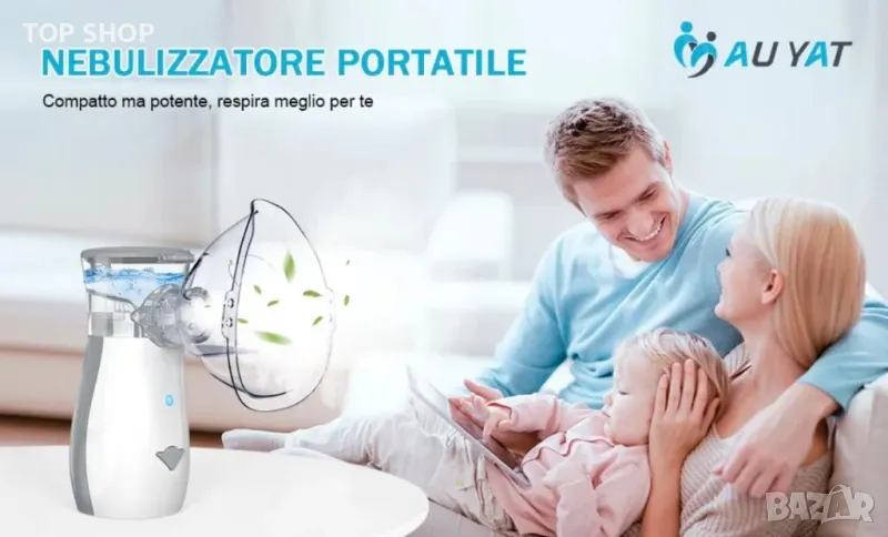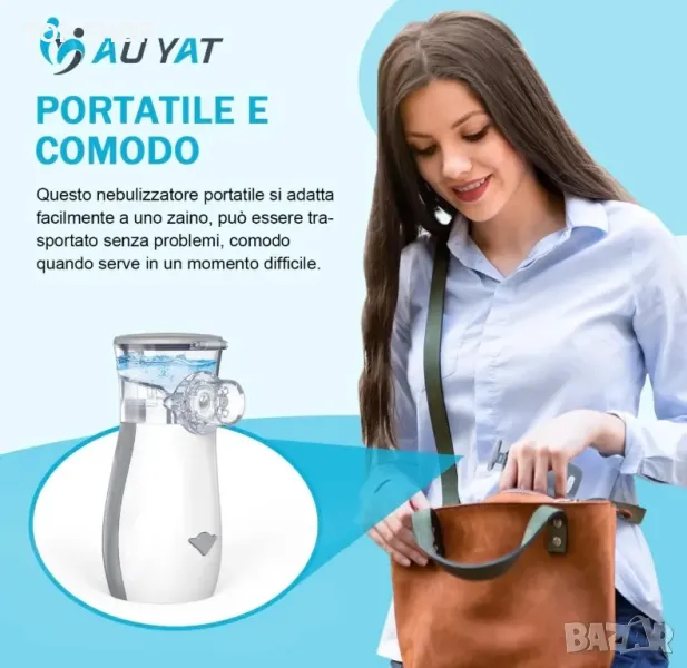 AU YAT Ултразвуков преносим Mesh Инхалатор,USB-C акумулаторен/3 маски/ултра тих <30dB/2 скорости