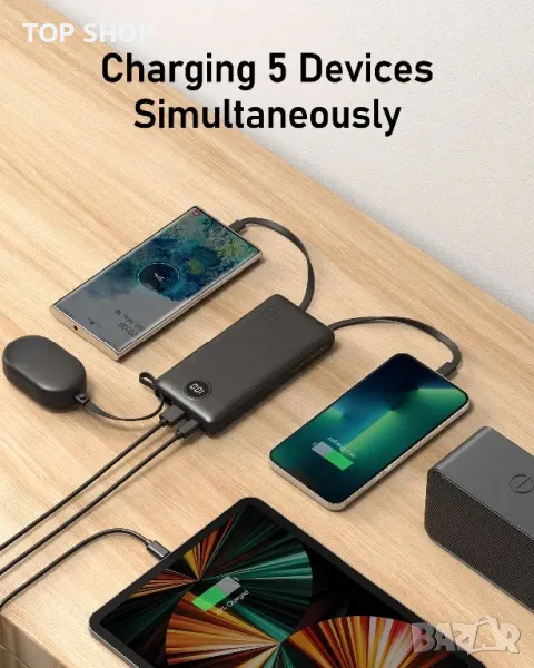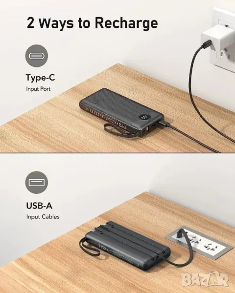 2 пъти бързо зареждане, тънък размер, LED индикаторни светлини, вграден кабел, USB C изход и вход за зареждане Изпращаме по Спиди и Еконт с преглед и тест.