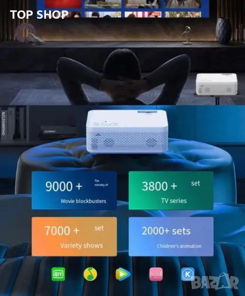 - С експлоатационен живот на лампата над 30 000 часа можете да използвате проектора повече от 3000 дни. СПЕЦИФИКАЦИИ: ANDROID 9.0/Ram-16GB/Rom - 64GB