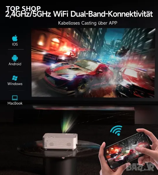 ОПИСАНИЕ - 5G/2.4G двулентова WiFi връзка: в сравнение с 2.4G проектор, нашият подобрен 5G WiFi