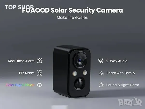 Безжична външна соларна камера FOAOOD/PIR сензор/облак/sd карта/двупосочно аудио/IP66 водоустойчива