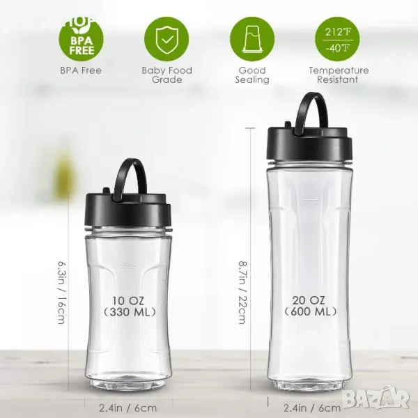 - Издръжлив и лесен за почистване: Смес от стъкла, изработени от избрани нетоксични за храна материали и тританови материали. Без BPA Корпусът и основата на персоналното смути thiem ixer shell могат да бъдат разделени, можете лесно да ги почистите. Ножовете се калибрират в основата на миксера и осигуряват безопасна и надеждна работа.