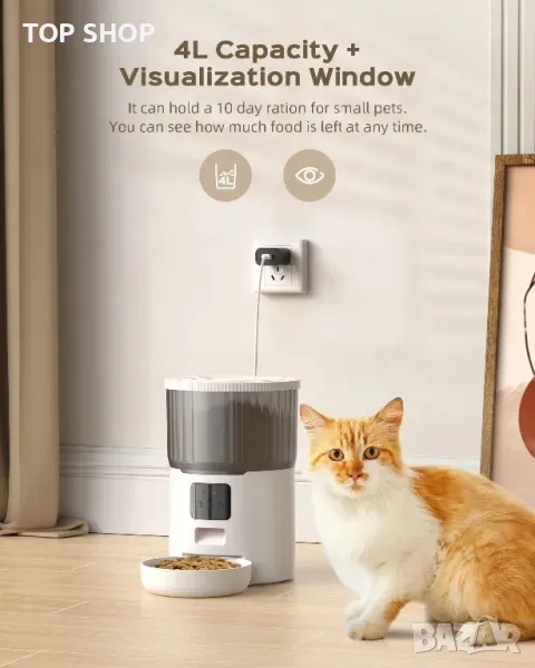 WIFI автоматична хранилка за котешка храна UIOOQ 4л/10секунди запис на глас/APP контрол