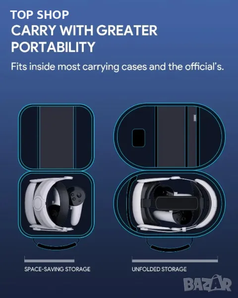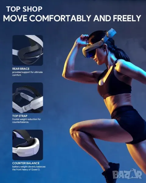* Страхотен комфорт с контрабаланс: Теглото на задната батерия умело балансира теглото на Quest 3S/Quest 3 и намалява натиска на лицето, което значително подобрява обгръщането. Горната лента е разширена и пълна с мека гъба, осигуряваща по-добро омекотяване, разтягане и намаляване на предното тегло