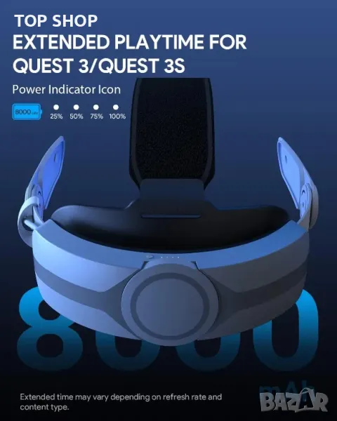 Каишка за глава Aubika,бързо зареждане за Meta Quest 3S/Quest 3, 8000 mAh батерия/смяна на Elite