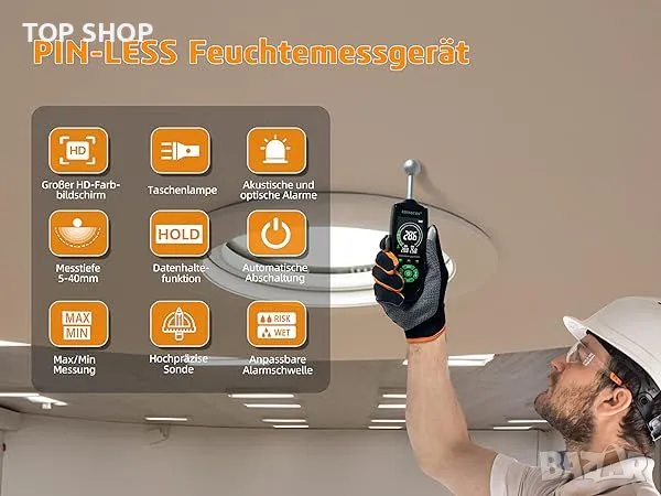 * Широки приложения: електронен индикатор за влага, който ви позволява бързо и лесно да откривате повърхностна влага в различни материали и да локализирате влагата в стената, пода или тавана и подовете.