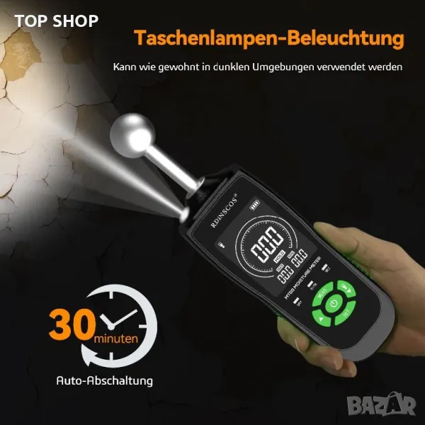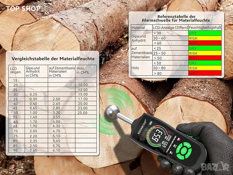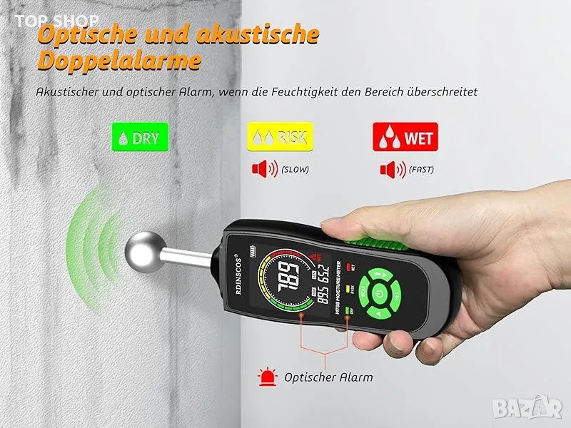 Професионален Влагомер RDINSCOS Стена/Зидария/дърво/мазилка/замазка/бетон/гипс