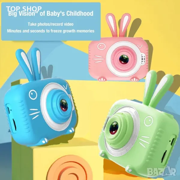 Преносим детски цифров фотоапарат/камера Bunny HD 8MP 2” IPS екран/32 GB SD карта, розов
