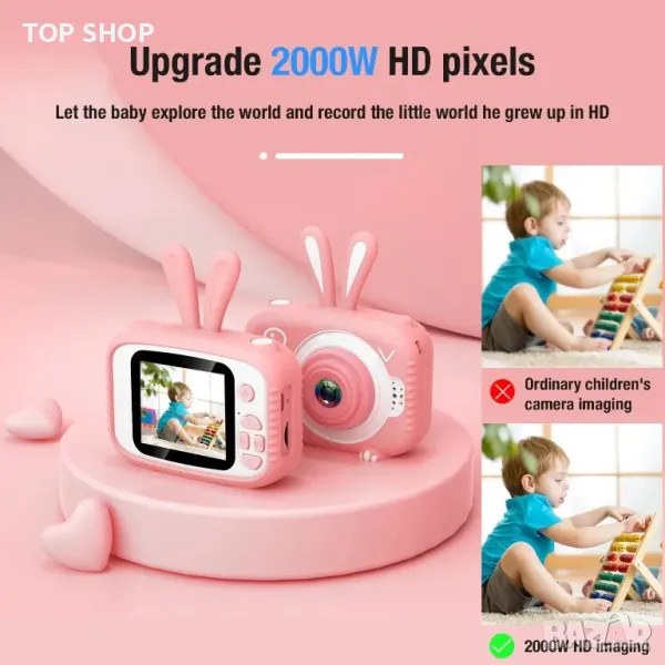 ОПИСАНИЕ - Надстройте най-добрата детска селфи камера: детска цифрова камера за деца има двойни камери, 800 мегапиксела и 1080P видео. Значително подобрена дефиниция на снимките. Уловете прекрасния момент на радост за момчета или момичета. Със снимането със стикери Bighead децата могат да правят снимки с рамки, да оставят няколко забавни снимки със семейството или приятелите.