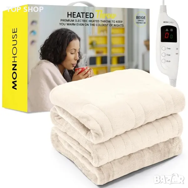 Луксозно поларено електрическо одеяло MONHOUSE 130X160 см 120W/Цифров контролер/9 настройки/Таймер