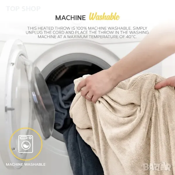 - Машинно пране и лесна поддръжка - Нашият нагревател може да се пере в машина и да е безопасен в сушилня за ваше удобство. Дистанционното управление и кабелът са напълно подвижни, което позволява това нагревател да се пере при ниски температури, просто не забравяйте да изключите и премахнете контролерите преди пране. Можете лесно и бързо да изключите контролите и просто да го поставите в пералнята, когато е необходимо, много лесно се изключва. Можете да се наслаждавате на чистата и свежа мека поларена тъкан с електрическо нагряване за години напред.