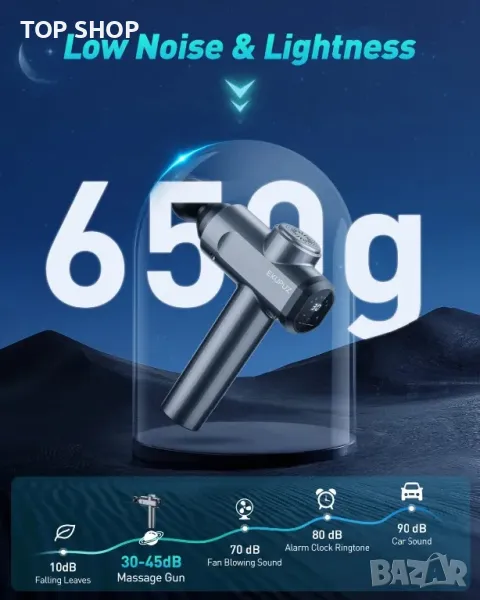 - Мощен и безшумен: този професионален масажен пистолет предлага впечатляваща производителност, докато работи тихо. С честота на потупване до 3000 пъти в минута ще изпитате интензивна мускулна релаксация. Въпреки мощната си производителност, устройството произвежда ниво на шум под 45 децибела дори при най-високите нива на вибрация