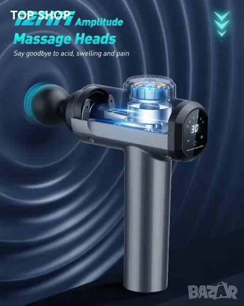 EKUPUZ 30-скоростен мощен мускулен масажен пистолет с 6 глави,LCD сензорен екран
