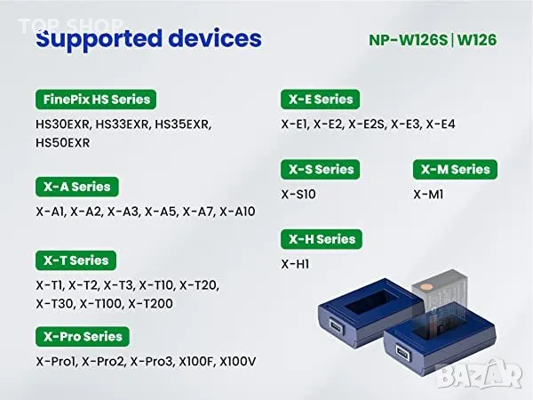 Bronine NP-W126S,NP-W126/Fujifilm/Смарт станция за зареждане на батерии за 10 марки фотоапарати