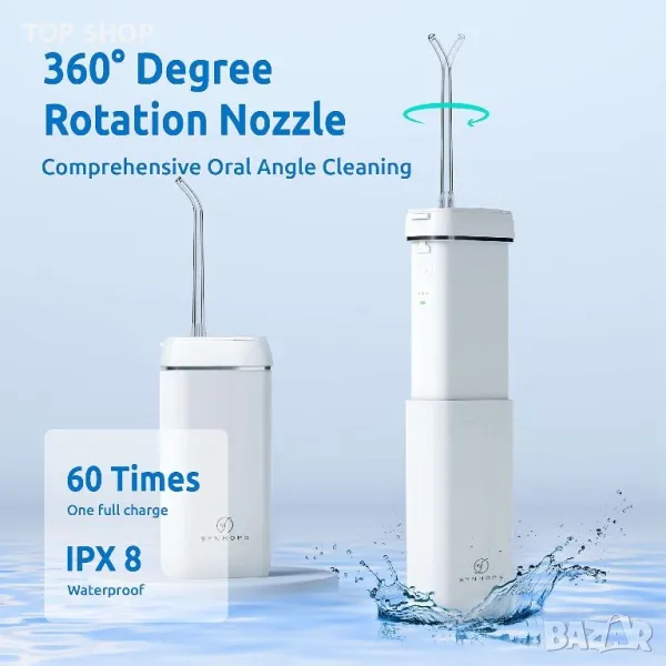 SYNHOPE Преносим зъбен душ/флосер за почистване на зъби/Телескопичен резервоар за вода/3 режима/IPX7