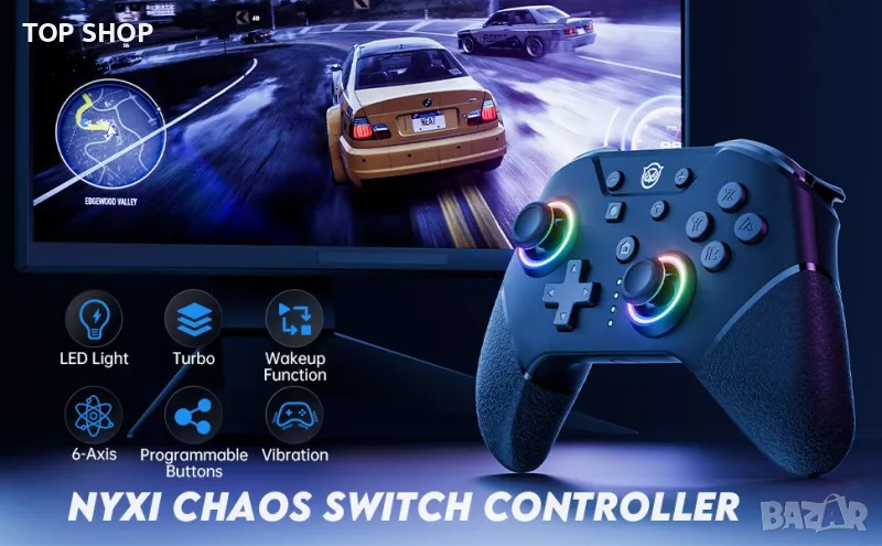 NYXI Chaos Switch Pro безжичен контролер/RGB LED подсветка-Nintendo Switch/Lite/OLED,програмируем