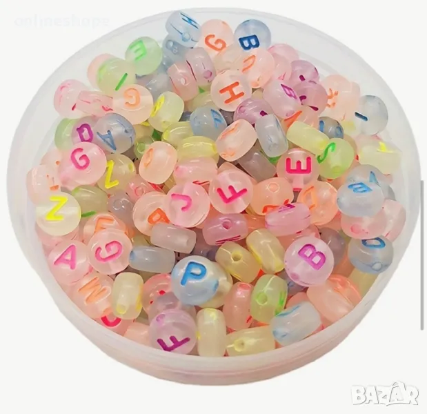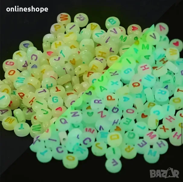 500 броя светещи буквени мънисти за гривни / колиета / пръстени /обеци