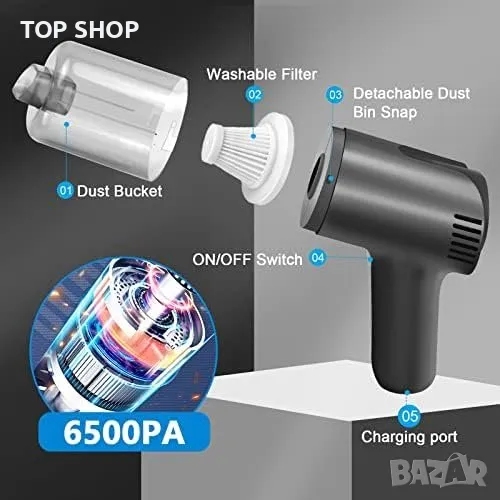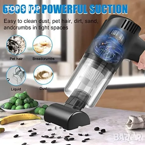 Мощно всмукване 6.5Kpa: Лесно премахва хранителни остатъци, частици и косми от домашни любимци.