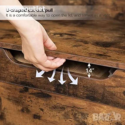 Предният панел на раклата за съхранение има набразден изрез, който лесно се отваря и затваря.