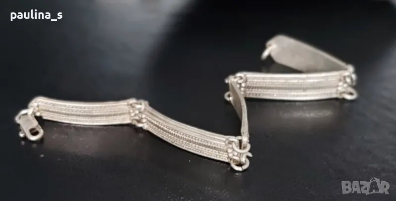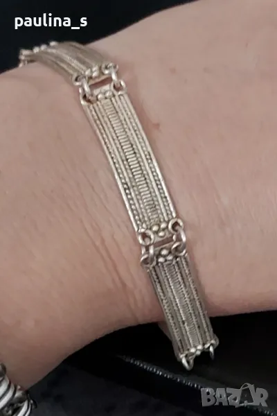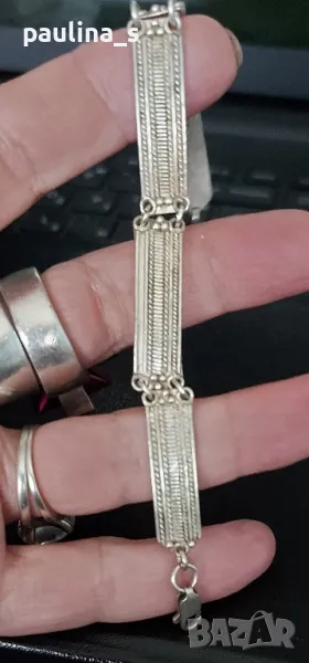 Масивна сребърна гривна, филигран с подложка от преди 50г, СБХ. В автентичен вид, съхранявана с грижа, без дефекти. Не се продава на грамаж, има антикварна стойност и цена. Дължина 17,5см. Мащабирането е на дланта и китката.