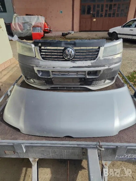 цяла предница т5 .предна броня с оригинален лип .фарове с вежди.и очиларка.бронята е за боя.няма удари и пукнатини.преден капак.