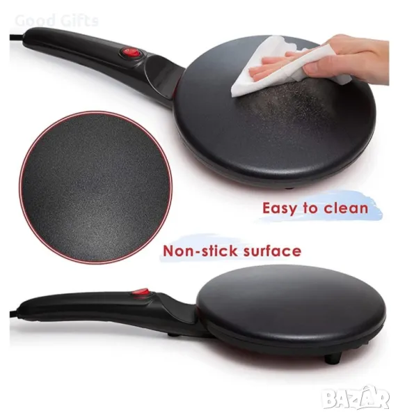 машина за палачинки. Незалепващата повърхност и регулируемите температурни контроли осигуряват перфектни резултати всеки път.Повърхността за готвене е идеална за приготвяне на палачинки от всякакъв размер, докато незалепващото покритие осигурява лесно освобождаване и безпроблемно почистване. Регулирането на температурата осигурява равномерно изпичане на палачинките и перфектни резултати всеки път.Лесно съхранение и елегантен дизайн.Освен за приготвяне на палачинки, тиганът може да се използва и за приготвяне на други ястия, като тортили. Възможностите са безкрайни! Приготвянето на палачинки и други ястия е лесно и бързо, така че ви спестява много време!
