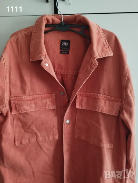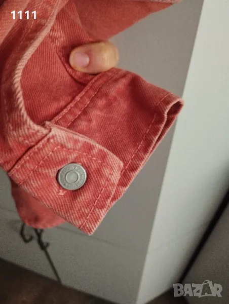 Якето е обличано броени пъти,в отлично състояние е.Цвета е между диня и корал. 100%памук. Размер L.Цена 58лв.