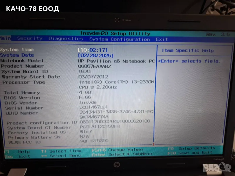 Лаптоп HP g6-1285sl