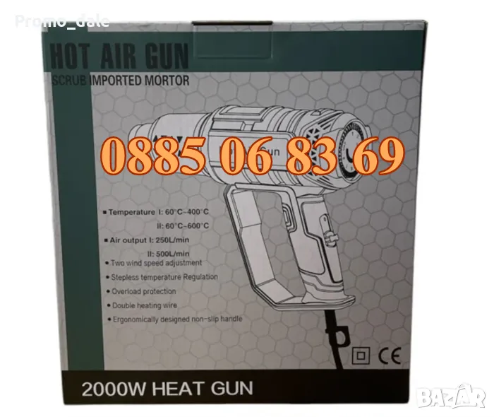 Инструментът предлага и възможност за регулиране на топлината, което позволява прецизно управление на температурата и осигурява оптимални резултати при различни материали и условия на работа. Пистолетът е идеален за задачи като сваляне на боя, разглаждане на лепила, разширяване на пластмаси, изсушаване на мокри повърхности и много други.