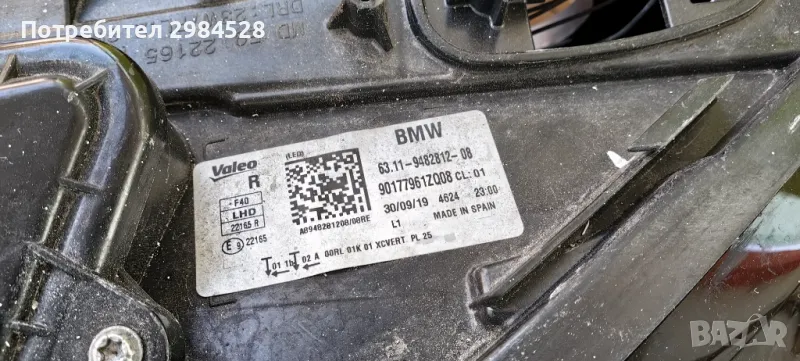 Оригинален десен адаптивен фар за BMW 1 F40 - Козметични забележки по стъклото, които не пропускат влага или прах. Здрави захвати с изключение на един - големия от горе. Всички забележки са видими на снимките.