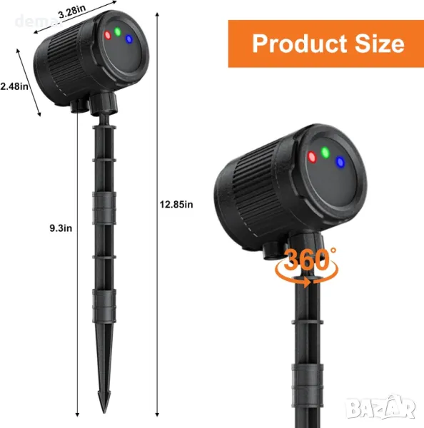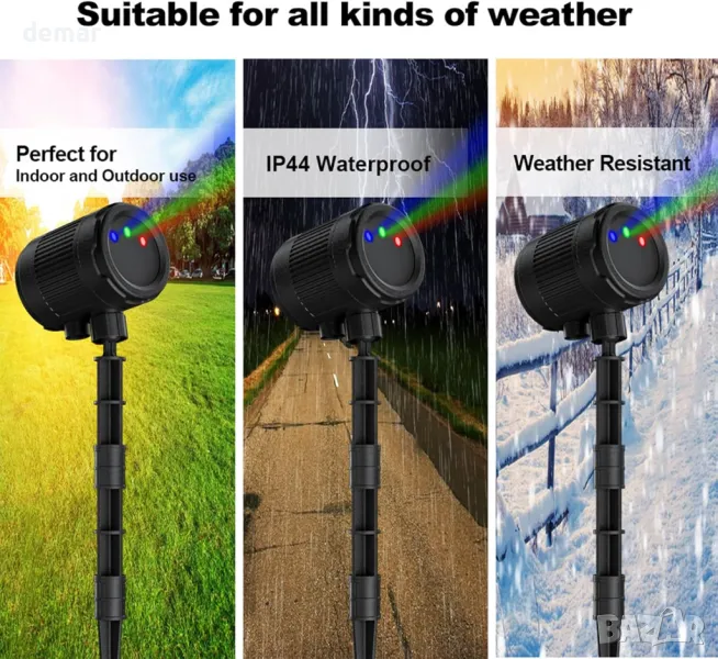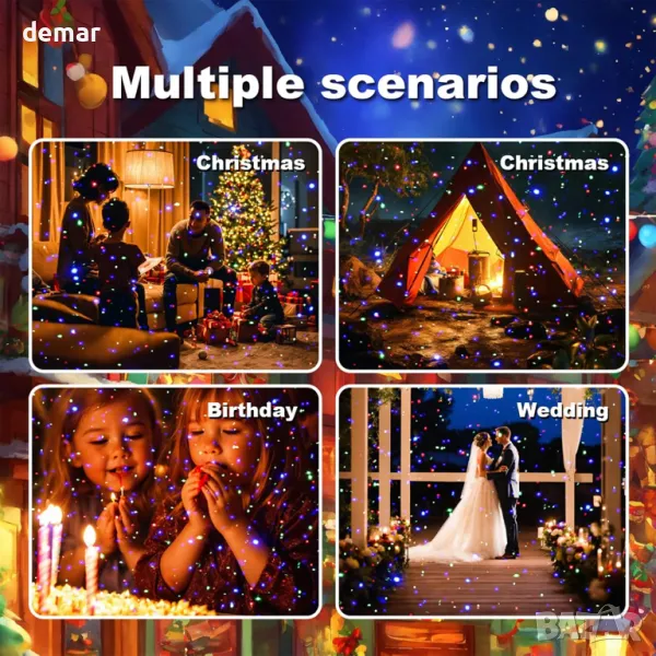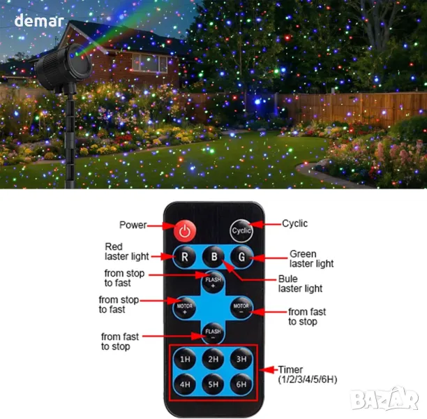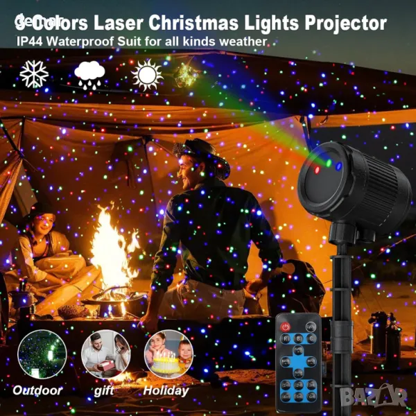 Този лазерен проектор разполага със 7 режима на осветление с червени, зелени и сини комбинации за подобряване на всяка празнична обстановка. Включва дистанционно управление с 15 клавиша за лесно управление в рамките на 10-метров обхват, което позволява настройки на въртене, скорост на трептене и режими на прожектиране. Покриващ до 300 квадратни метра с над 1000 искрящи светлинни петна, той е перфектен както за тържества на закрито, така и на открито. Гъвкавият дизайн позволява монтиране на стена, анкериране към земята или поставяне на маса. С IP44 водоустойчив рейтинг, той гарантира издръжливост и надеждна работа при различни метеорологични условия.