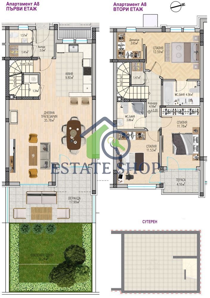 ✅ 24 дуплекс къщи (180-185 кв.м.) с веранда (20-22 кв.м.) и двор (36-86 кв.м.)