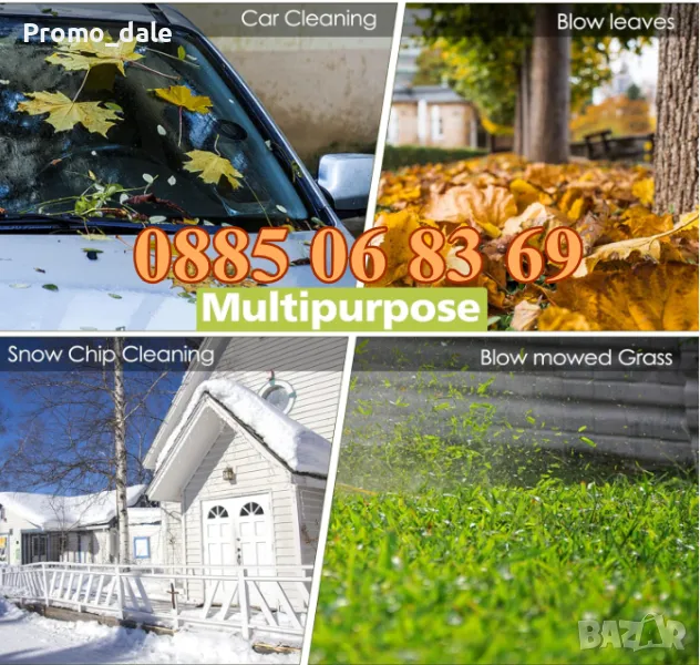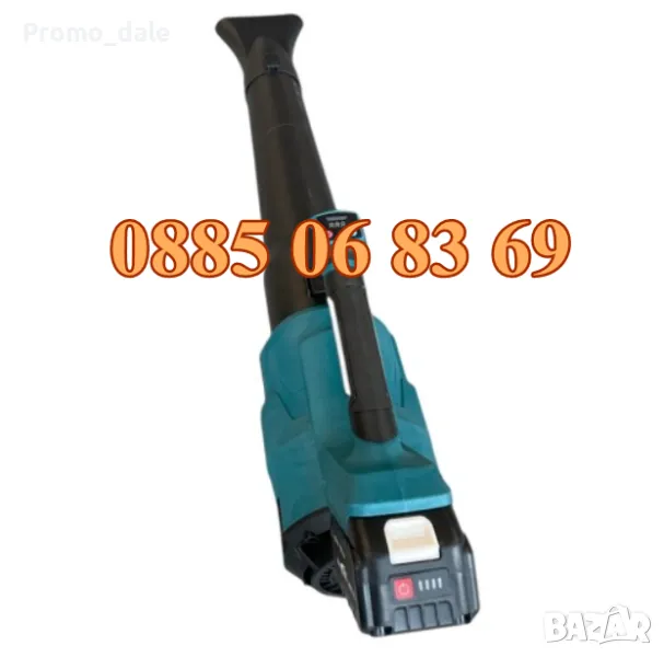 Подходяща е за използване в градината за издухване на лист. Има 2 накрайника. Литиево-йонната батерия.