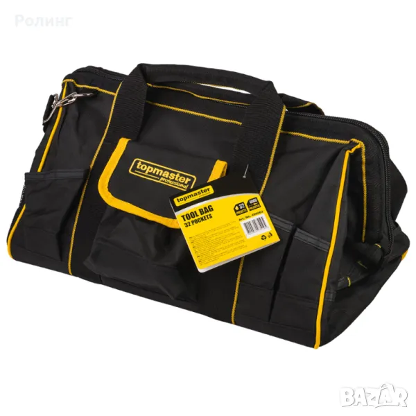 Сакът разполага с 32 джоба с различни размери, което позволява перфектна организация на инструментите. Малките джобове са идеални за съхранение на винтове, пирони и аксесоари, докато по-големите са подходящи за по-обемни инструменти