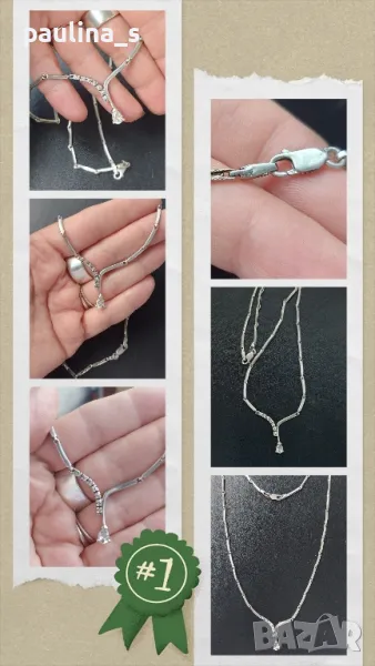 Два броя / Сребърно колие с камъни / проба 925 Italy