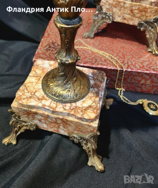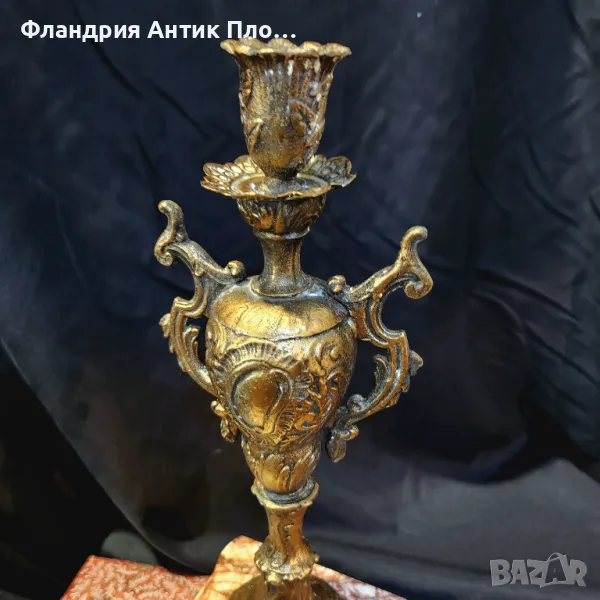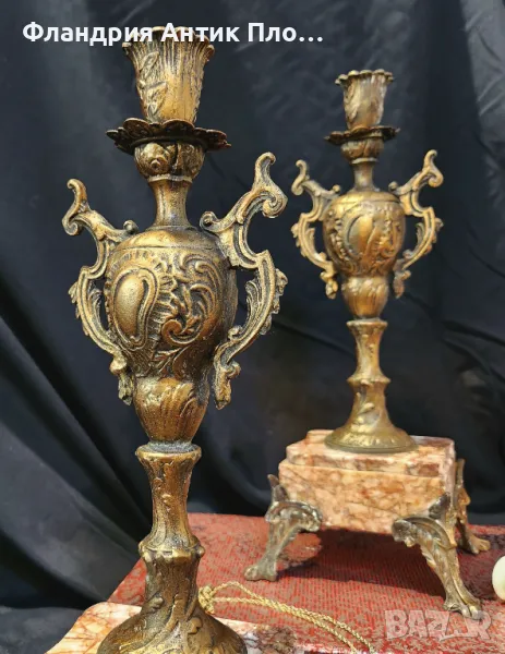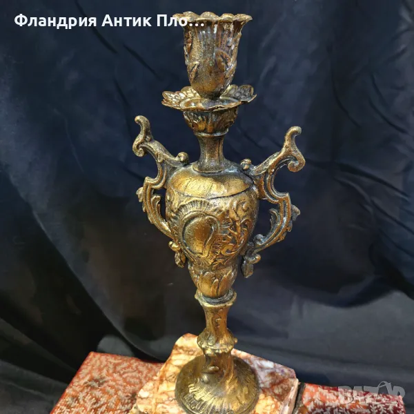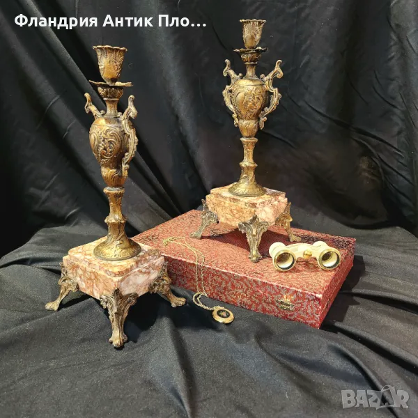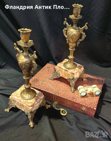 Изключително редки и елегантни, тези антикварни свещници на около 150 години са истинска находка за ценители на класическия стил. Изработени през епохата на Наполеон III, те съчетават бронзирани метални детайли и благороден мрамор, оформени в богато украсен нео-бароков стил.