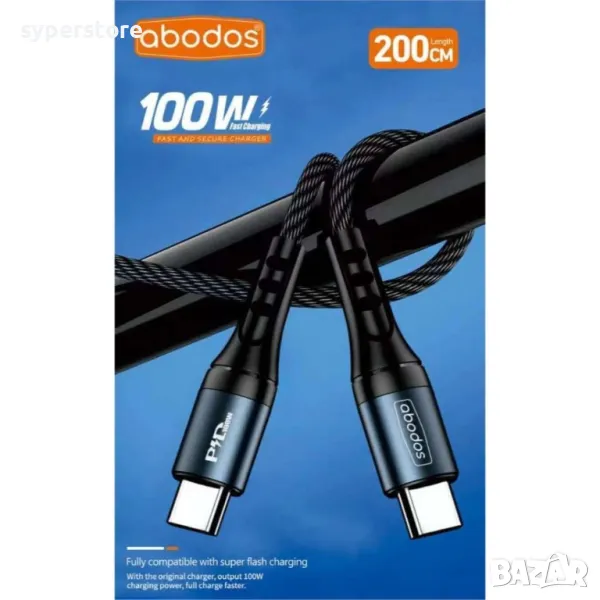 Кабел Type C - Type C M/M 2m Digital One SP01002 abodos ds331, 100W, Fast charge, черен, Type C to T → Обява 49312591