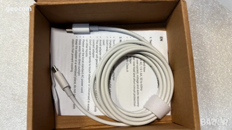 Пълен комплект: зарядно, кабел, вилица шуко.