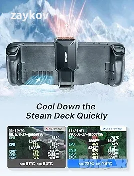 Мощно охлаждане: Само след 4-8 минути работа този охладител Steam Deck/Steam Deck OLED може да намали температурата на устройството с 8-15°C, което го отличава с изключителния си капацитет на охлаждане.
