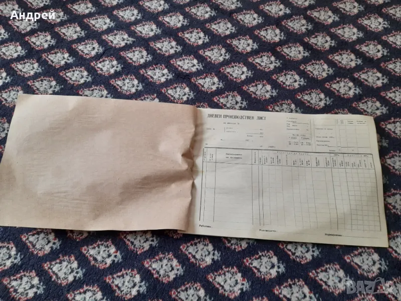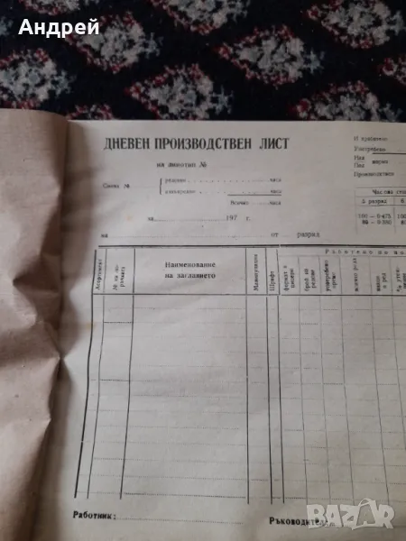 Стар кочан Дневен производствен лист → Обява 49314536