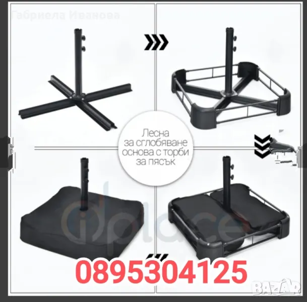 Чадър градински двоен 440х260 см с основа UV защита и водоустойчиво покритие - бежов249лв.Модел: чадър - бежовНаличност: В наличностДвоен сгъваем градински чадър с полиестерен сенник с UV защита и метална рамка.Сянка в голям мащаб: цели 4 метра дължина и 2.6 ширина! Двойният чадър означава перфектно удобство за цялото семейство и за голяма група приятели! Чадърът е чудесен избор за край басейн, открити пазари, битаци или градина.* С включена квадратна основа (стойка) с водоустойчив калъф и торби за пълнене на пясък, за тежестРазмери: Д: 440 см Ш: 260 см х височина на основата: 210 см Цвят: БежовМатериал: Полиестер, металСенникът е изработен от висококачествена материя, която е устойчива на избледняване, атмосферни влияния и достатъчно издръжлива за на употреба на открито.С плавен, лесен и бърз механизъм от ръчна манивела за сгъване и разпъване.Стоманена рамка с прахово покритие, за защита от ръжда при външна употребаОснова: Стойката и торбите за пясък и калъфът са включени в комплекта, гарантирайки стабилност и удобство