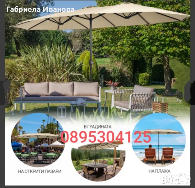 Градински чадър,двоен 4,4/2,6м с водоустойчиво покритие и UV защита!Топ цена 249 лв