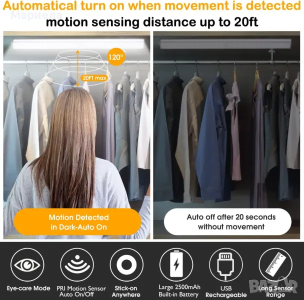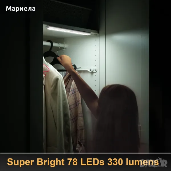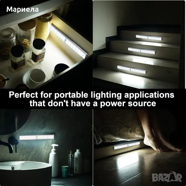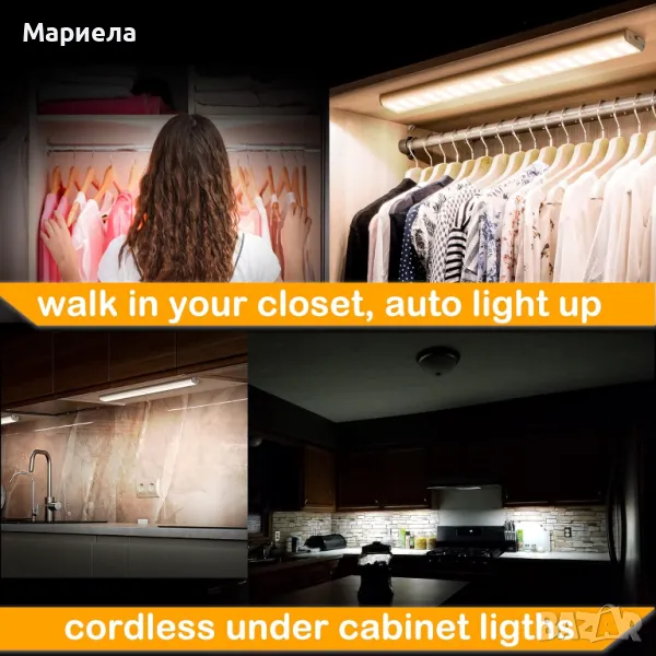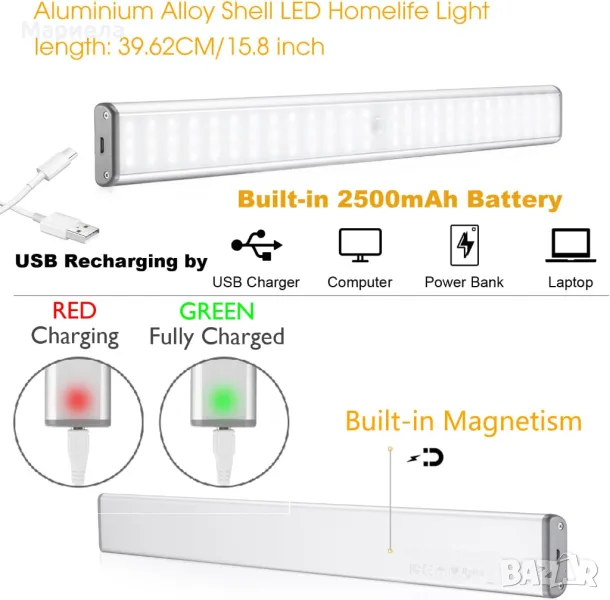 Безжична магнитна LED лампа с датчик 45см. / 2500mAh / Лампа Под Шкаф / Лампа за Гардероб