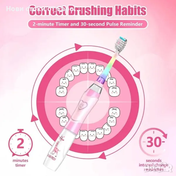 Детска електрическа четка за зъби за малки деца на възраст 2-4-8-12 години