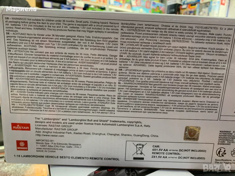 Колата работи с 3 броя батерии от типа АА, които НЕ са включени в комплекта, а дистанционното 2 броя батерии от типа АА, които също НЕ са включени в комплекта.