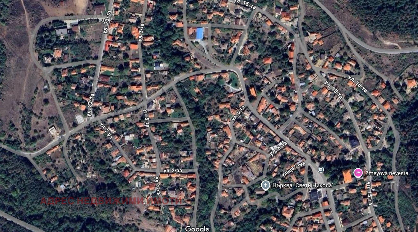 ОПИСАНИЕ Адрес продава отличен парцел с полумасивна жилищна постройка в село Змейово, Стара Загора. Имотът е с 1270 кв.м площ, лице на улица, с ток, вода, ограден. Намира се в над центъра в северна част на селото. СГРАДА Две стопански полумасивни постройки, жилищна полумасивна и навес фигурират в границите на парцела. Сградите са за събаряне или основен ремонт. МЕСТОПОЛОЖЕНИЕ Село Змейово е сред любимите на старозагорци, находящо се само на 6 км от града, по първокласен международен път. сгушено сред хълмовете на Средна гора, с прохлaдно лято и понякога снежна зима. Легендарен е Змейовския пелин, винена напитка която дори си има и свой празник в района! ПРЕДИМСТВА Голям парцел със сгради, отлична база за построяване на една или няколко къщи.