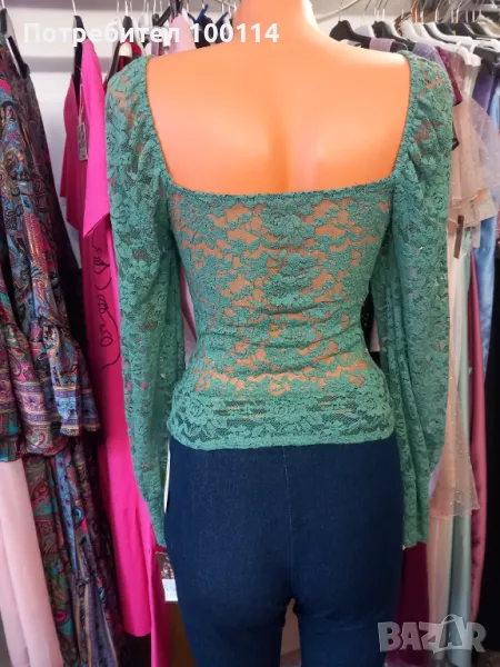 Зелена дантелена блуза, снимка 1 - Блузи с дълъг ръкав и пуловери - 49316481 Зелена дантелена блуза, снимка 2 - Блузи с дълъг ръкав и пуловери - 49316481 Зелена дантелена блуза, снимка 3 - Блузи с дълъг ръкав и пуловери - 49316481 1/3