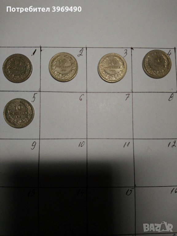 5 броя монети по 10 стотинки от 1913 г. → Обява 49317216