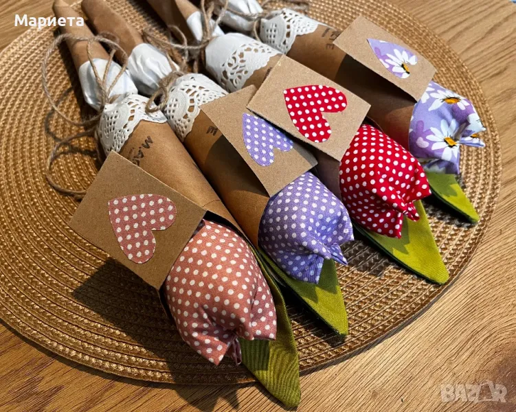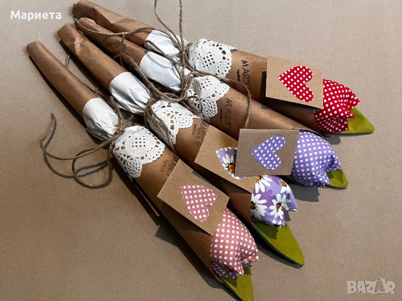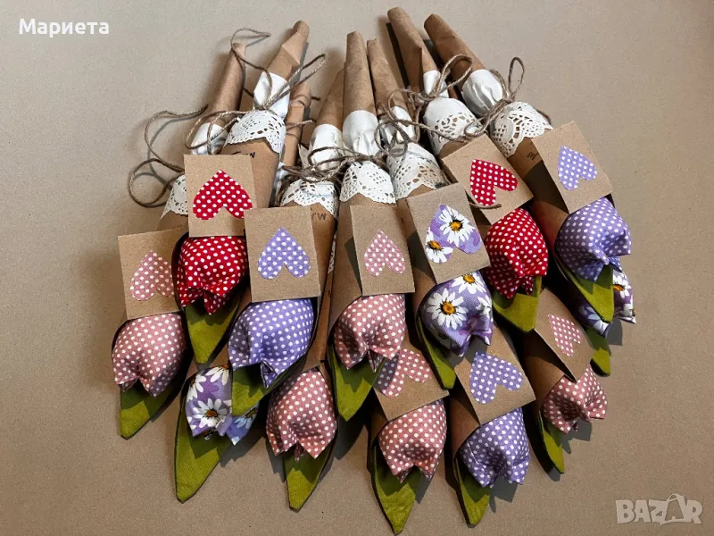 Лалета Текстилни Цветя Ръчна Изработка Букет Лалета лалета от плат → Обява 49317859