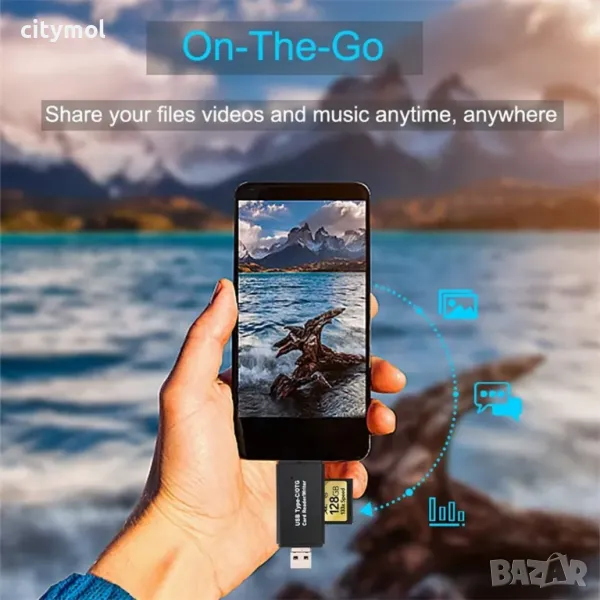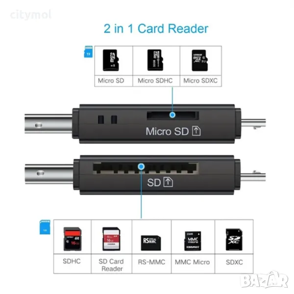 четец на карти Micro SD/ SD USB 3.0 и Micro USB OTG за смартфони и лаптопи